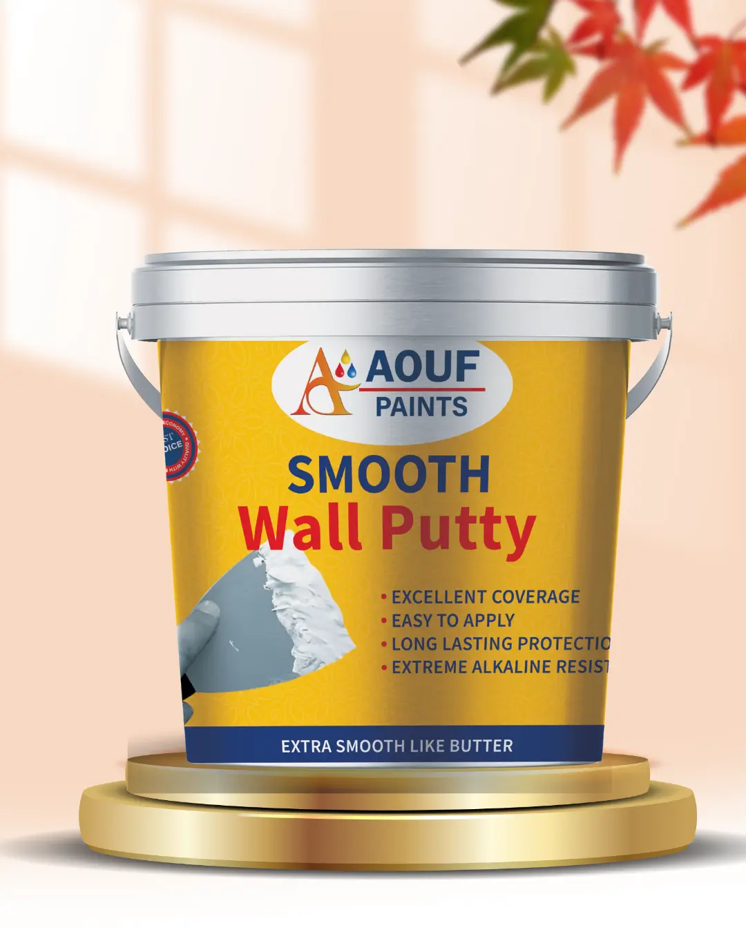 Aouf Tough Interior Wall Putty is a high-quality, acrylic-based ready-to-use wall putty specially formulated for interior use. It provides a smooth, even surface for water-based paints, improving finish and durability. This putty is the perfect base for achieving a flawless and refined paint finish on indoor walls and ceilings.